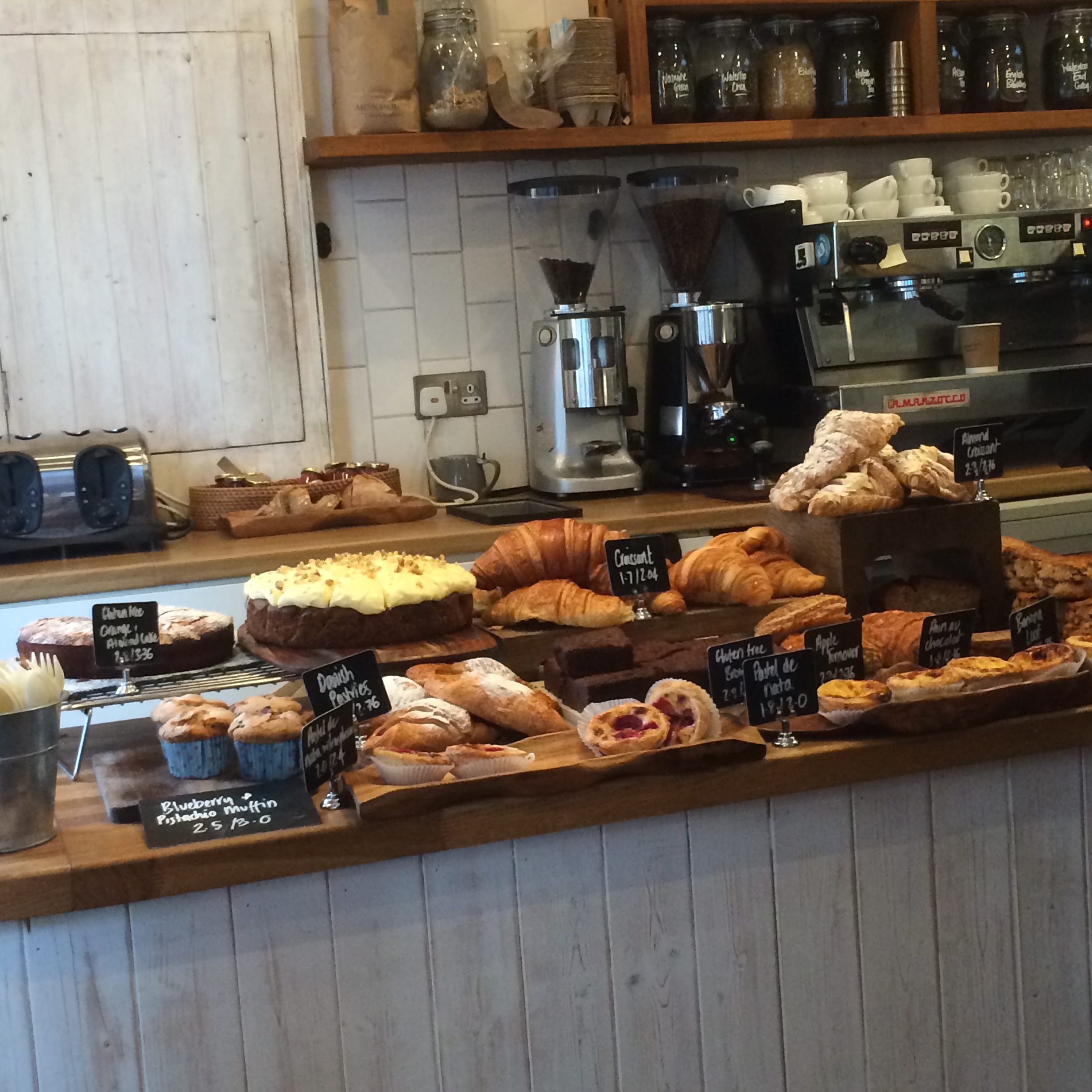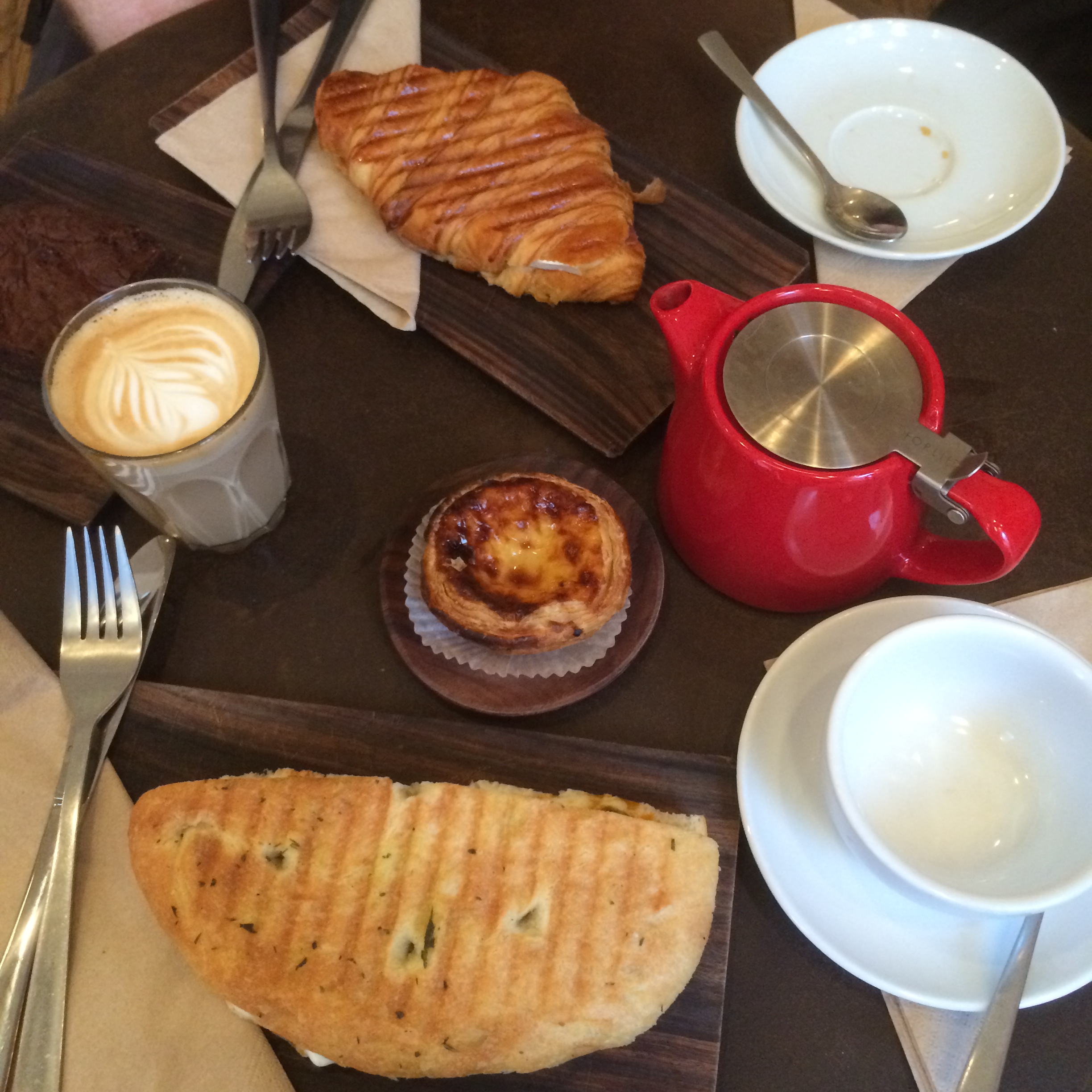 I opted for a focaccia with mozzarella, pesto & sun-dried tomatoes while the other half chose a ham & cheese croissant. Both of these were served simply, toasted on a wooden board. I obviously had to have some tea and was delighted to see they not only had loose leaf tea, but had created their on blend, Winter tea, so on spying that my choice was easily made for me. Now I wouldn’t call myself a tea snob, but there is a certain way I like my tea served. if its loose leaf, I need to be able to remove the leaves before I drink it, I don’t think that’s too much to ask…..They did not disappoint, the tea was a delight to drink and by far the best tea I had while I was down.Needing a caffeine fix the other half opted for a latte, served quaintly in a little glass. when it came to cakes, we opted for a Portuguese custard tart and a chocolate brownie, both of which were an absolute delight. It was only when we were half way through our cakes, and neither of us had spoken, that we begrudgingly offered a taster but it was obvious I picked best with the custard tart, though “someone” might argue that and say the brownie was better, but what do they know??